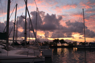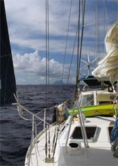 Dès octobre, notre Etoile a été bousculée par quelques passages dépressionnaires. Ils étaient de plus en plus longs, de plus en plus venteux et pluvieux. Nous sentions comme une menace se préciser. Ces cycles étaient entrecoupés de périodes de plus en plus courtes de beau temps, la mer se réchauffait, un facteur de plus qui joue en faveur des cyclones. Il était temps de chercher un abri.