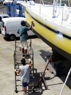 Nous étions prêts à remettre ces travaux aux calanques grecques, quand notre retour sur Moorea me donna l'idée d'écrire à Tita, la patronne du chantier de Technimarine sur Tahiti et de lui demander un devis. Celui-ci était déjà beaucoup plus compétitif concernant la peinture de la coque, du pont et l'antidérapant. De plus, nous connaissions les qualités du chantier, c'est là que nous avions fait le carénage l'an dernier.