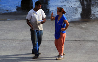 Les jours où je suis « inutile » sur le chantier, je viens néanmoins saluer notre Etoile, et voir l'évolution. Je trouve dans le bureau de Tita, un havre... et une très très bonne copine. Nous avons sensiblement le même âge toutes les deux, et je suis spectateur d'un brin de femme à la détermination insondable. Elle n'a pas son pareil pour s'imposer au sein d'une équipe de gros bras. De quelques mots de tahitien, elle renvoie tout le monde au travail. Ce chantier me fait l'effet d'une ruche. Dès 7 heures du matin, et plus tôt encore (car Tita et Alain se lèvent tous les jours à 3h45 pour venir sur leur chantier), tout le monde est à pied d'oeuvre. Les paresseux ne sont pas admis sur le chantier et personne ne l'est. Les patrons montrent l'exemple, on ne peut poser son regard quelque part sans voir ou Alain, ou Tita, voire les deux. A croire qu'ils ont le don de se dédoubler, ou du moins d'omniprésence, en tout cas de disponibilité, ça, c'est sûr !