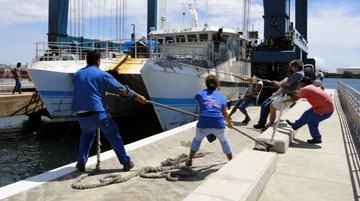 Il est temps pour Tamatai de vérifier notre moteur. L'an dernier le chantier Technimarine ne disposait pas de mécaniciens pour petites unités, le chantier était plus orienté vers les gros thoniers, grands yachts, et bateaux jusqu'à 300 tonnes. Nous avions donc dû faire appel à la seule équipe agréée Volvo de Polynésie, et nous en avions été très mécontents. Notre moteur qui ne nous avait jamais posé le moindre problème ne démarra pas lors de la remise à l'eau. Cette année, nous étions bien décidés de faire appel à d'autres compétences. Fort heureusement pour nous, Technimarine accueille de plus en plus de voiliers, dont les participants aux rallyes « World Arc » chapeautés par Jimmy Cornell. Il s'est donc doté d'une équipe capable de travailler sur nos montures.