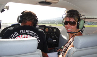 Pour le moment, nous continuons à notre rythme, ou plutôt à celui imposé par le ciel qui a engrangé 10 jours de retard au chantier. Au bout de trois semaines, le soleil sort, les nuages battent en retraite, et s'offre à nous l'occasion unique de survoler Tahiti en cessna. Deux heures kidnappées au chantier, sans la moindre culpabilité !