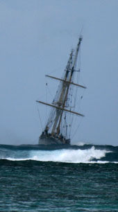 Déjà notre Etoile s'ébroue, nous ne la retenons plus, elle file vers la passe et nous porte vers le large. Le Pacifique est calme, le vent minime, et malgré tout, nous faisons sous voile 4 nœuds... A partir de là, nous ferons de l'ouest, de l'ouest... et qui sait jusqu'où cela nous mènera-t-il ?